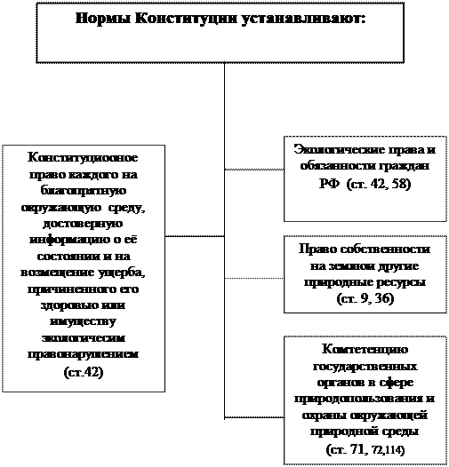 В соответсивии со ст. 42 Конституции РФ Каждый имеет право на благоприятную окружаюшую среду, достоверную информацию о ее состоянии и на возмещение ущерба, причиненного его здоровью или имуществу экологическим правонарушением .(см. схема 1)