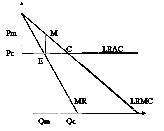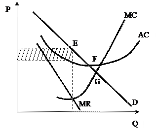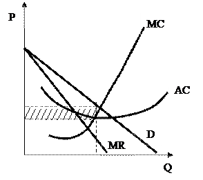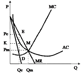 Прибыль максимальна, если при равенстве предельной выручки предельным издержкам предельная выручка с увеличением выпуска сокращается в большей степени, чем предельные издержки. В условиях максимизации прибыли монополистом предельные издержки, в отличие от модели рынка совершенной конкуренции, могут убывать. Монополист может, максимизируя прибыль, отказаться от повышения выпуска, даже если предельные и средние издержки производства снижаются. Это, как известно, служит одним из аргументов в пользу тезиса о производственной неэффективности монополии [7, c.91-92].