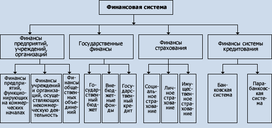 Финансовую систему можно представить в виде совокупности финансовых звеньев, призванных обеспечить государству выполнение его политических и экономических функций. Она состоит из четырех основных звеньев - государственного бюджета, местных финансов, финансов государственных предприятий и специальных правительственных фондов. Каждое звено представляет собой совокупность финансовых элементов, органически увязанных между собой и направленных на осуществление финансовой политики государства.