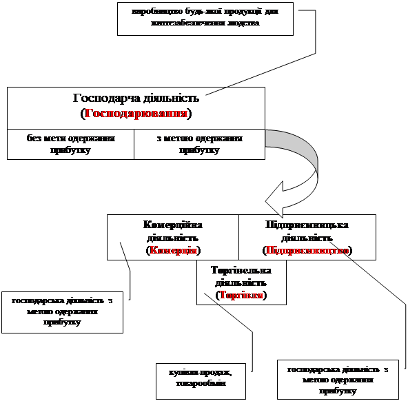 На основі вищенаведених визначень з довідкових видань можна чітко визначити грані розходження між взаємозалежними поняттями – комерційною, підприємницькою, господарською і торговою діяльністю.