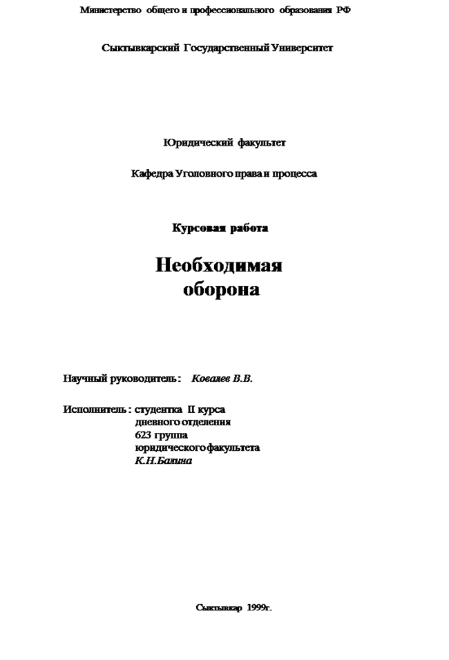 Дипломная работа: Необходимая оборона