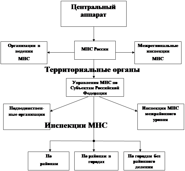 Однако эта норма противоречит НК и применению не подлежит. Поэтому если муниципальные органы создают налоговые органы или налоговые службы, то НК и Закон о налоговых органах РФ на эти местные органы не распространяется. Характеристика этой системы как централизованной означает, что в МНС действует только вертикальное подчинение. Нижестоящий налоговый орган подчиняется вышестоящему и двойного подчинения эти органы не имеют, то есть налоговая инспекция МНС по Санкт-Петербургу в состав Администрации Санкт- Петербурга не входит, у нее нет горизонтального подчинения.