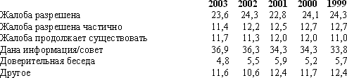 Таблица 1. Количество просьб и жалоб в год (в %)