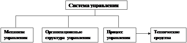 Механизм управления включает в себя: цели, миссии, функции, принципы, методы управления.