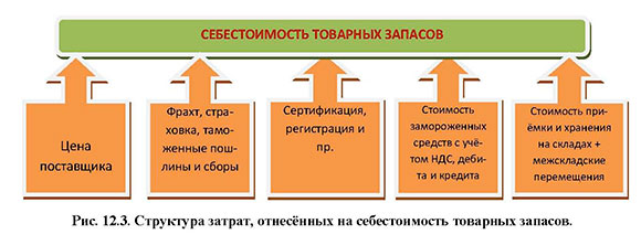 Рис. 12.3. Структура затрат, отнесённых на себестоимость товарных запасов.