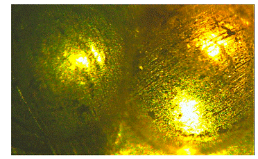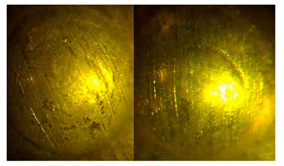 В результате проведенного исследования, было установлено совпадение формы, размеров и взаиморасположения следов зацепа выбрасывателя, отражателя и бойка, отражающих групповые признаки. Совпадение микрорельефа участков поверхности следов бойка в гильзах с различной кинетической энергией по количеству, размерам и взаиморасположению впадин, царапины и трасс, отражающих индивидуальные признаки оружия (рис. 1, 2, 3).
