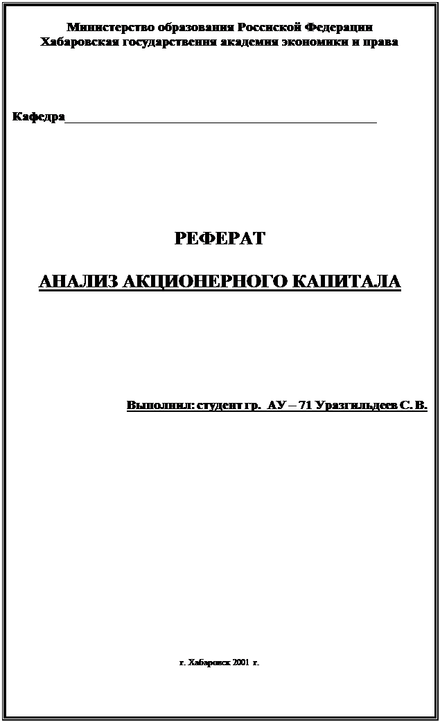 Реферат: АНАЛИЗ АКЦИОНЕРНОГО КАПИТАЛА