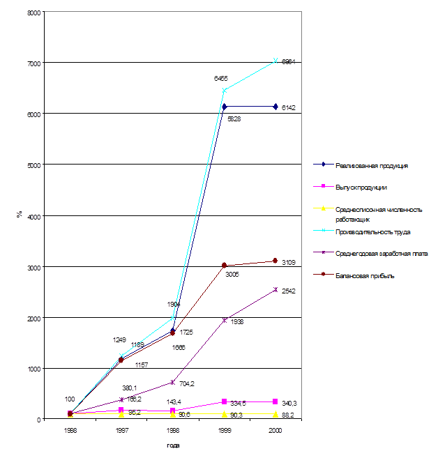 Доля СХРП «Супер» в выпуске продукции в целом по ВБРТФ велика. Она колебалась в анализируемый период с 63% в 1998 году до 68% в 2000 г. Динамика выпуска продукции этим подразделением в анализируемый период представлена в таблице 4.