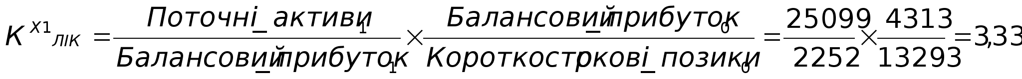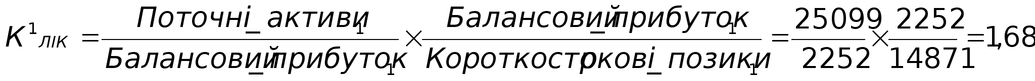 За допомогою методу ланцюгової підстановки розрахуємо вплив кожного фактора на ліквідність підприємства: