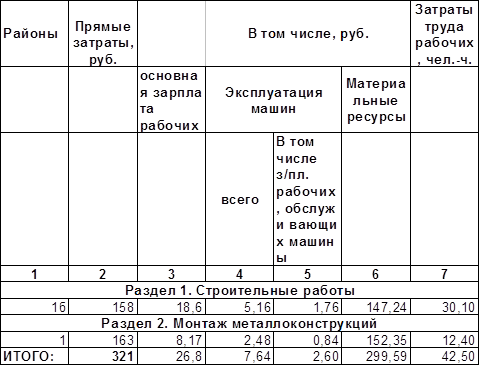 Таблица 1. Таблица 1показывает структуру прямых затрат по объекту (павильона ожидания общественного транспорта) с учетом климатических условий района строительства.