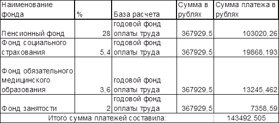 Годовой фонд оплаты труда =224437+143492,5=367929,5 рублей