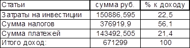 Общий доход= 2945586*(1-0,7721)= 671299 рублей
