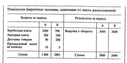 Предприятие должно выбрать то место расположения, где зависящие от него результаты в наибольшей степени превышают соответствующие затраты.