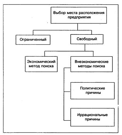В некоторых отраслях выбор места расположения предприятия не является свободным, а связан с определенными материальными предпосылками (например, угольные шахты, ГЭС). Все предприятия, которые не подпадают под такого рода ограничения, свободны в выборе своего размещения, т. е. они могут найти себе место, которое им кажется наиболее благоприятным. Поэтому принятие решения по поводу данной проблемы не совсем простое, так как каждое рассматриваемое место имеет свои преимущества и недостатки.