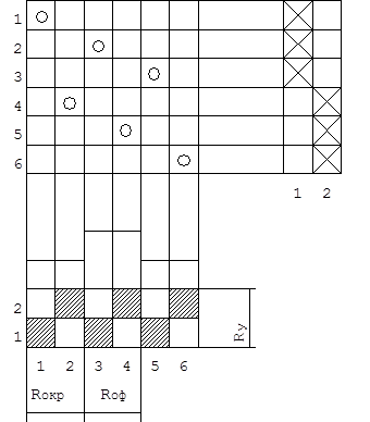Поскольку на ткацком станке АТПР-100 число ремизок равно 6 [4, с.261], то заправочный рисунок ткани, построенный на 6-ти ремизках при рассыпной проборке нитей основы в ремиз, будет выглядеть следующим образом: