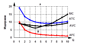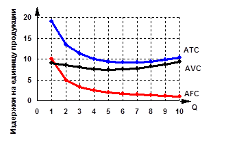 Рис. 2. Кривые средних издержек фирмы в краткосрочном периоде
