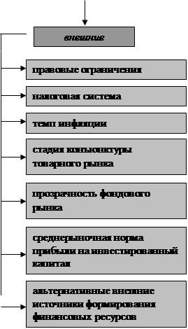 Внешние факторы рассматриваются как своего рода ограничительные условия, определяющие границы формирования пропорций распределения прибыли. К числу важнейших из этих факторов относятся: