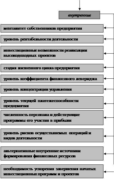 Внутренние факторы оказывают решающее воздействие на пропорции распределения прибыли, так как позволяют формировать их применительно к конкретным условиям и результатам хозяйствования данного предприятия. К числу важнейших из этих факторов относятся: