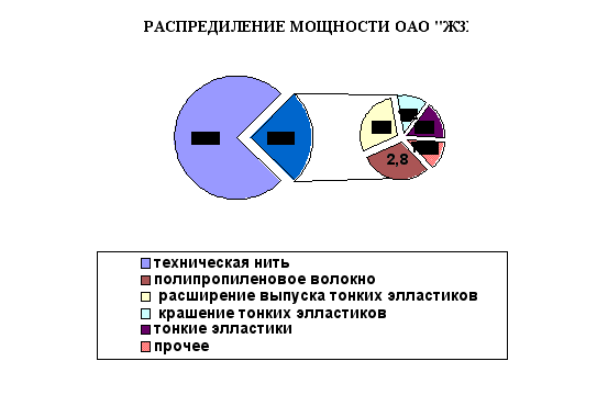 Следует заметить, что у ОАО "ЖЗХВ" есть несколько эффективных проектов (“расширение объёмов выпуска текстурированых нитей низких линейных плотностей”, “организация выпуска полипропиленовой нити”, “крашение тонких элластиков”, “выпуск полипропиленового «Спанбонда»” и т. д.)позволяющих расширить ассортимент выпускаемой продукции, а также задействовать незагруженные мощности текстильного потока.