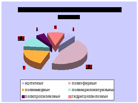Среди всех видов химических волокон и нитей полиэфиры развиваются самыми высокими темпами. Если в 1970 году их доля в общем выпуске составляла 35%, то по прогнозам специалистов доля этого вида волокна к 2000 г. возрастёт до 50% от общего мирового производства химических волокон. Анализ информации по мировому рынку за период 1975 – 1985 гг. показал, что ни один прогноз того времени не предполагал такого бурного развития полиэфирных волокон.