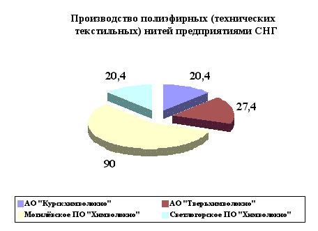 отказаться от этой идеи (хотя бы на время пока предприятие уверенно не станет на ноги). Итак, конкуренты – это, во-первых - Могилевское производственное объединение "Химволокно", которое является крупнейшим в Европе комплексом по изготовлению полиэфирных волокон и нитей.
