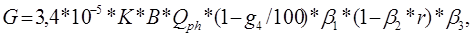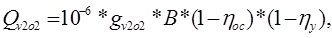 Масса выбрасываемых загрязняющих веществ при сжигании природного газа Мi , т/год |