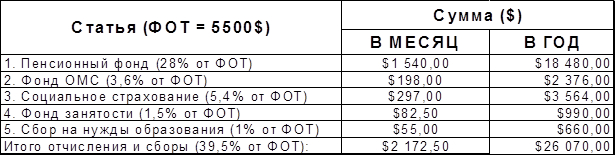 1) налог на содержание ЖКХ - 1,5% от объема реализации - $3150