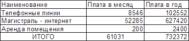 1.1.2. Издержки на аренду помещений и услуги связи.