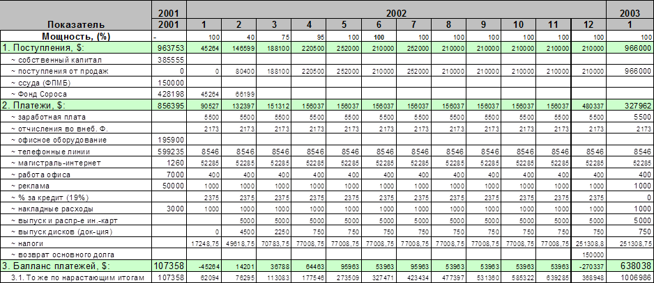 (план денежных поступлений и выплат в 2002 г. в $ США)