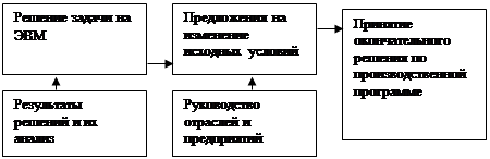 Ход решения задачи показан на блок-схеме (рис. 2). При оптимизации производственной программы объединения производится выбор такой производственной программы, при которой каждое предприятие использовалось бы для выпуска таких изделий, которые на нем целесообразнее всего изготовлять, в результате чего либо общий эффект достигает максимума, либо общие затраты становятся минимальными. Этот математический подход исключает волевые решения и позволяет осуществить научно обоснованное распределение производственной программы между предприятиями.