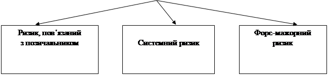 Більшість страхових компаній та комерційних банків України до недавнього часу при оцінці кредитного ризику враховували лише одне з можливих його джерел – фінансові можливості позичальника ( об‘єктивний ризик пов’язаний з позичальником ) . Практика показала - багато позичальників не повертають кредити не тому , що не мають можливості , а тому , що не бажають цього робити. Особливу увагу в умовах кризи в нашій країні слід також приділяти впливу на кредитний ризик ризику виникнення форс-мажорних обставин. Також слід враховувати, що в чистому вигляді ризики не зустрічаються , вони накопичуються та корелюють між собою утворюючи системний ризик. Даний підхід до формуванні кредитного ризику як системи ризиків враховані в структурі кредитного ризику , що наведена у Малюнку №1.