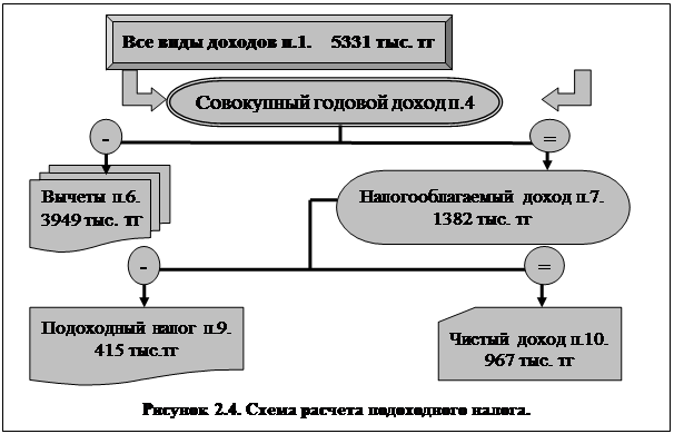 п.10. Чистый доход. Исходя вышесказанного следует, что чистый доход исчисляется как разница между налогооблагаемым доходом и суммой подоходного налога.