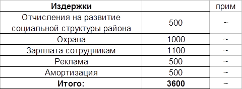 а. Низкая себестоимость услуги - расходы идут лишь на оплату сотрудников, рекламу и развитие социального сектора района.