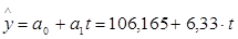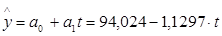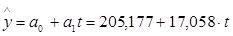 Из соответствующих уравнений прямых, полученных для перечисленных выше показателей, при подстановке соответствующего года найдем линейную зависимость показателей от времени.