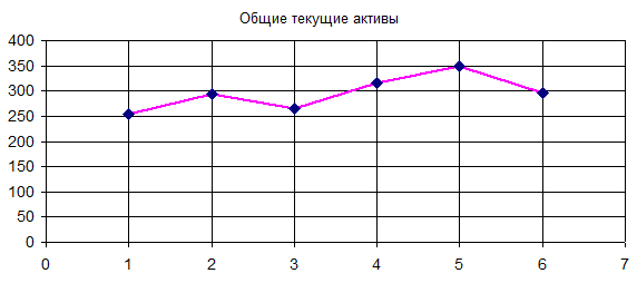График зависимости показателя “общие текущие активы” от года в соответствие с таблицей 1 имеет следующий вид: