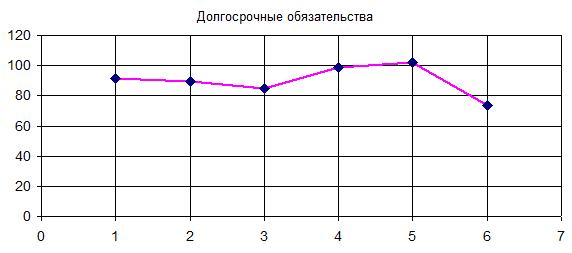 Примем по расположению точек линейную тенденцию изменения долгосрочных обязательств.