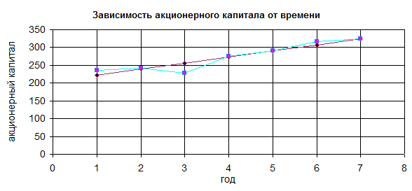 Примем по расположению точек линейную тенденцию изменения акционерного капитала.
