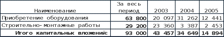 | Итого капитальных вложений: | 93,000 | 43,457 | 34,649 | 14,894 | 0 | 0 | 0 | 0 | 0 |