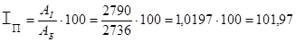 Темп роста производственных фондов, (Iп=Аi\Аб·100), % |