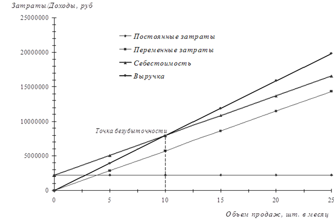8.2.2 Аналитический метод определения точки безубыточности заключается в определении минимального объема выручки от реализации продукции по формуле: