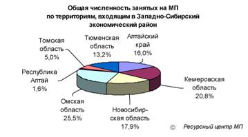 Численность постоянно работающих на МП – 661 тыс. человек (доля Западно-Сибирского экономического района в общей численности постоянно работающих на МП в РФ – 11%) Количество МП на 1000 жителей (в среднем по РФ – 5,8 малых предприятий на 1000 жителей) Доля работающих на МП в общем числе занятых - 13,7% (в среднем по РФ – 12,5%)