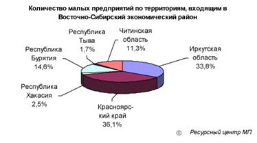 Численность постоянно работающих на МП – 275,2 тыс. человек (доля Восточно-Сибирского экономического района в общей численности постоянно работающих на МП в РФ – 4,4%) Количество МП на 1000 жителей (в среднем по РФ – 5,9 малых предприятий на 1000 жителей) Доля работающих на МП в общем числе занятых - 7,6% (в среднем по РФ – 10,1%)
