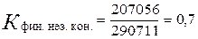 Таким образом, на конец отчетного периода произошло увеличение имущества предприятия, на это повлияло увеличение оборотных активов. Так же возрос собственный капитал и обязательства в соотношении собственных и заемных средств, но деятельность предприятия финансируется за счет собственных средств.
