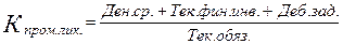 3 Коэффициент промежуточной ликвидности показывает способность погашать свои текущие обязательства, как за счёт имеющихся денежных средств текущих финансовых инвестиций, так и за счёт предстоящих поступлений денежных средств.