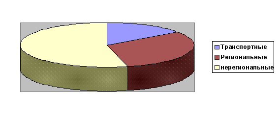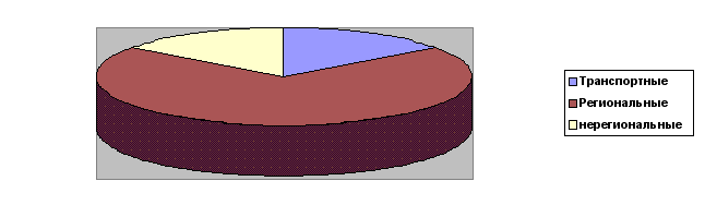 Региональные, нерегиональные, транспортные ФПГ, в %