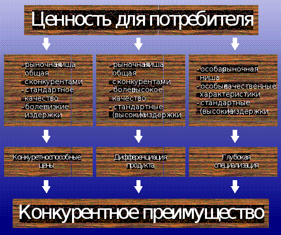Поэтому очень важно определить конкурентные преимущества предприятия, которые связаны либо с качественными характеристиками товара (услуги), либо с более низкими ценами на продукцию (услугу) предприятия. Конкурентное преимущество, можно сказать, определяет стратегию поведения предприятия на рынке. Стратегия – это основа для дальнейшего планирования, обеспечивающего устойчивое получение прибыли. Именно с помощью планирования коммерческой деятельности предприятия детально устанавливают, каким образом, какими методами оно получает запланированный уровень прибыли.