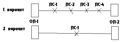 При первом варианте используются два симметричных кабеля типа МКСАШп 1*4*1,2 с общей протяженностью 2L. При втором варианте используется один кабель типа ОК-50-2-5-4.