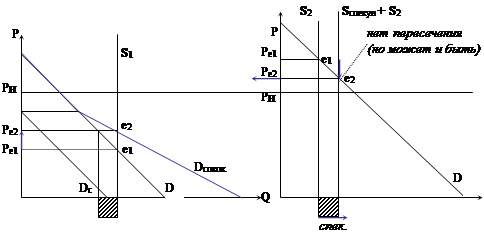 3) Если эластичность одинаковая, то ценовая дискриминация невозможна: P1 = P2 .