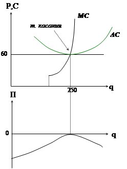 Если взять точку пересечения кривой D и кривой AC (AC=P) , получим цену P2 . Это цена, обеспечивающая справедливую (нормальную) прибыль (на уровне безубыточности).