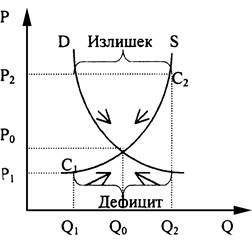 Отмечу, что уровень существующих цен равновесия по тем или иным причинам может не устраивать государство. Например, равновесие установилось при очень высоком уровне цен на хлеб. Однако хлеб для населения сегодня - один из основных продуктов питания. Времени для ожидания, пока рынок стихийно отреагирует на высокие цены, увеличит предложение и снизит цены, нет. А социальная напряженность при высоких ценах на хлеб будет расти день ото дня. В этой ситуации государство установит фиксированные цены хотя бы на несколько сортов хлеба на уровне ниже цен равновесия. Бывает ситуация, когда государство устанавливает фиксированные цены выше цен равновесия. Это происходит при существовании избыточного производства какой-либо продукции, когда установление равновесных цен может привести к массовому разорению, как правило, мелких производителей с более высоким уровнем затрат.